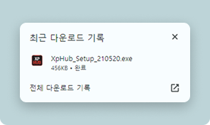 브라우저 우측 상단의 다운로드 목록 또는 내 문서 > 다운로드 폴더에서 XpHUB_Setup.exe 파일 클릭